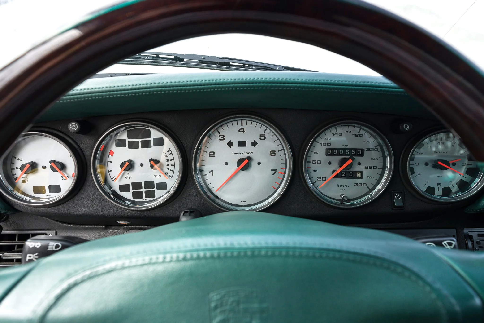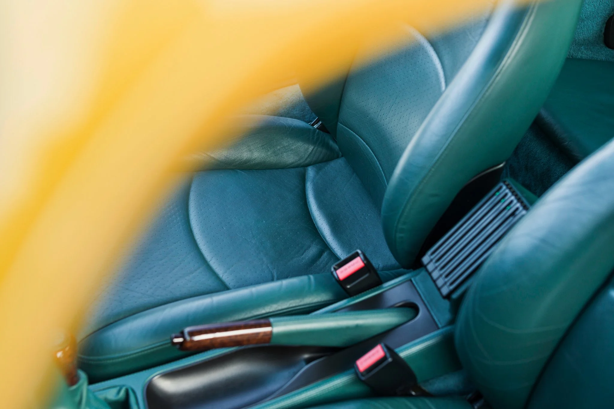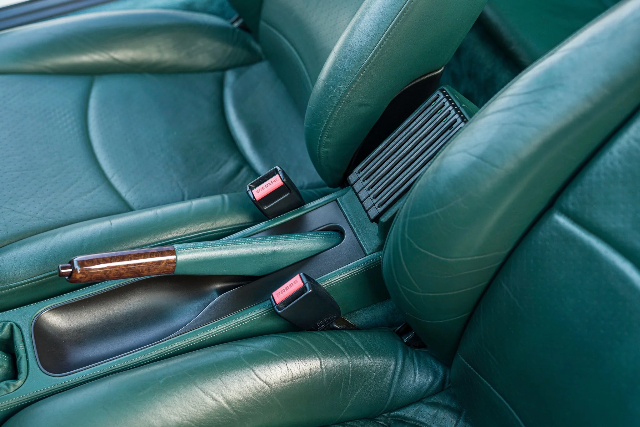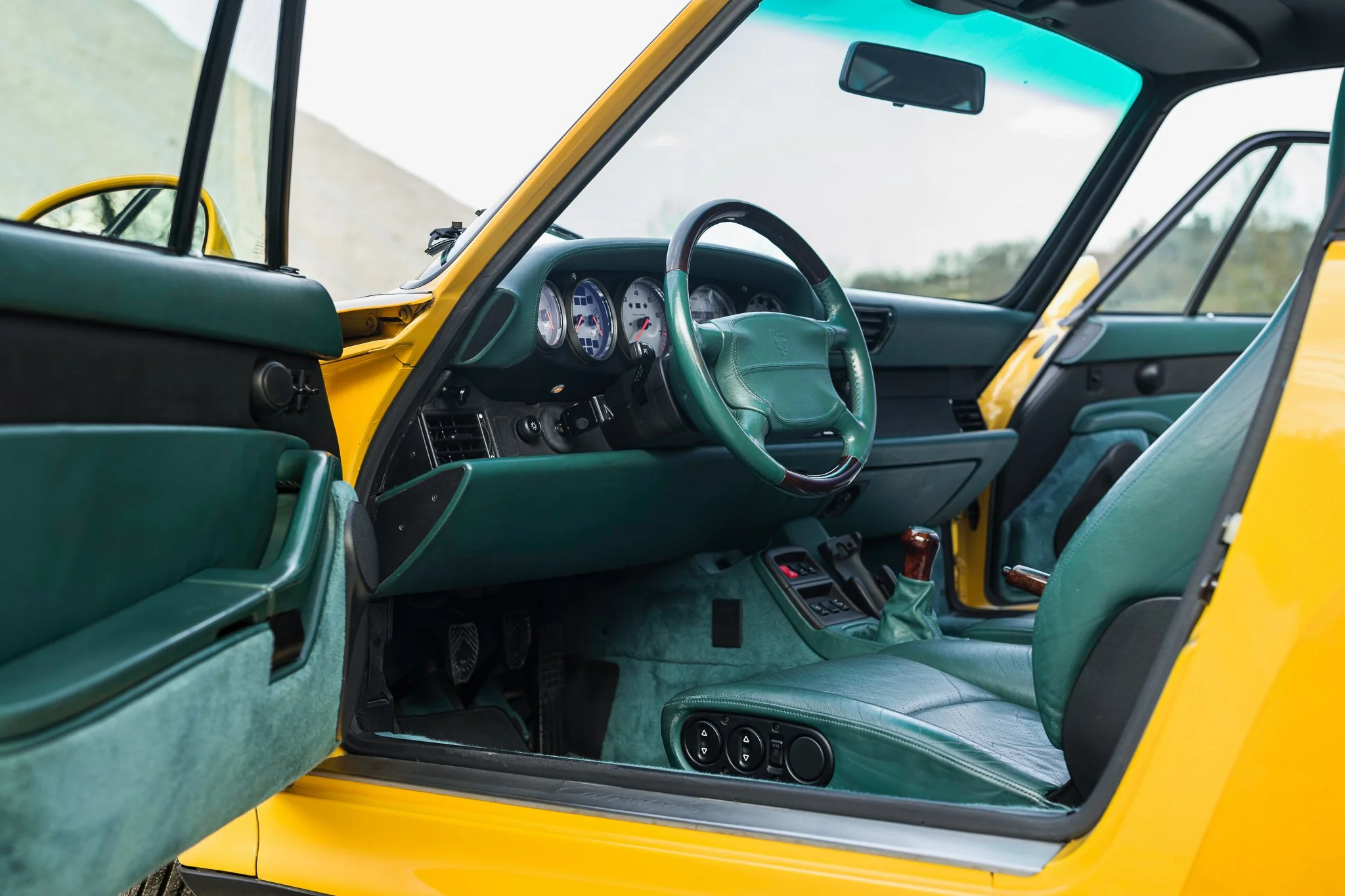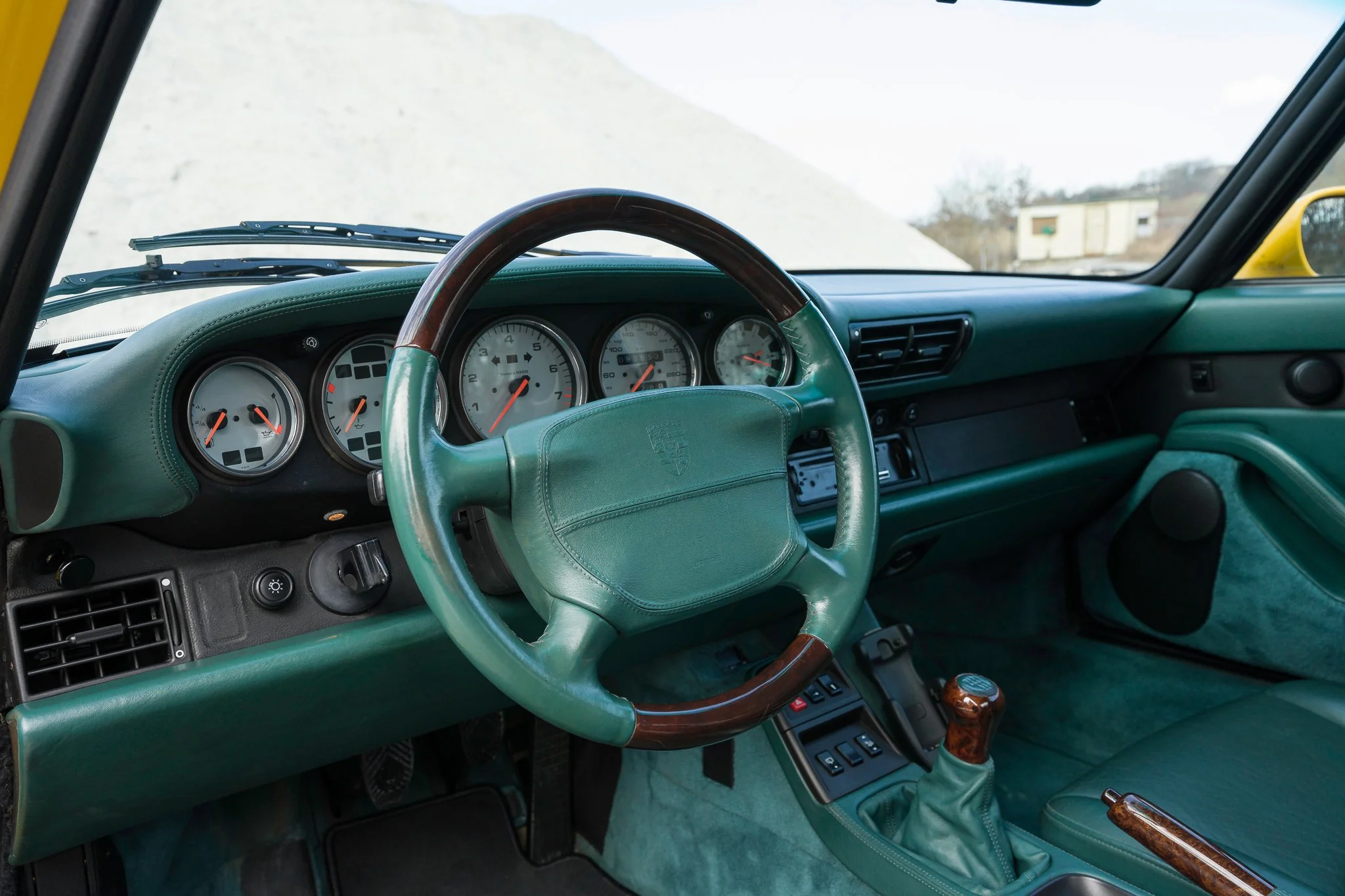 Externally, the SpeedYellow shade is a joy to behold. Well regarded by Porsche executive heads throughout the 90's, Nephrite Green full leather upholstery, the same interior that then CEO Michael Macht spaced on his Turbo. The Burl Walnut finish from the Exclusive department puts the finishing touch on eccentricity, the combination is absolute brilliance in person.