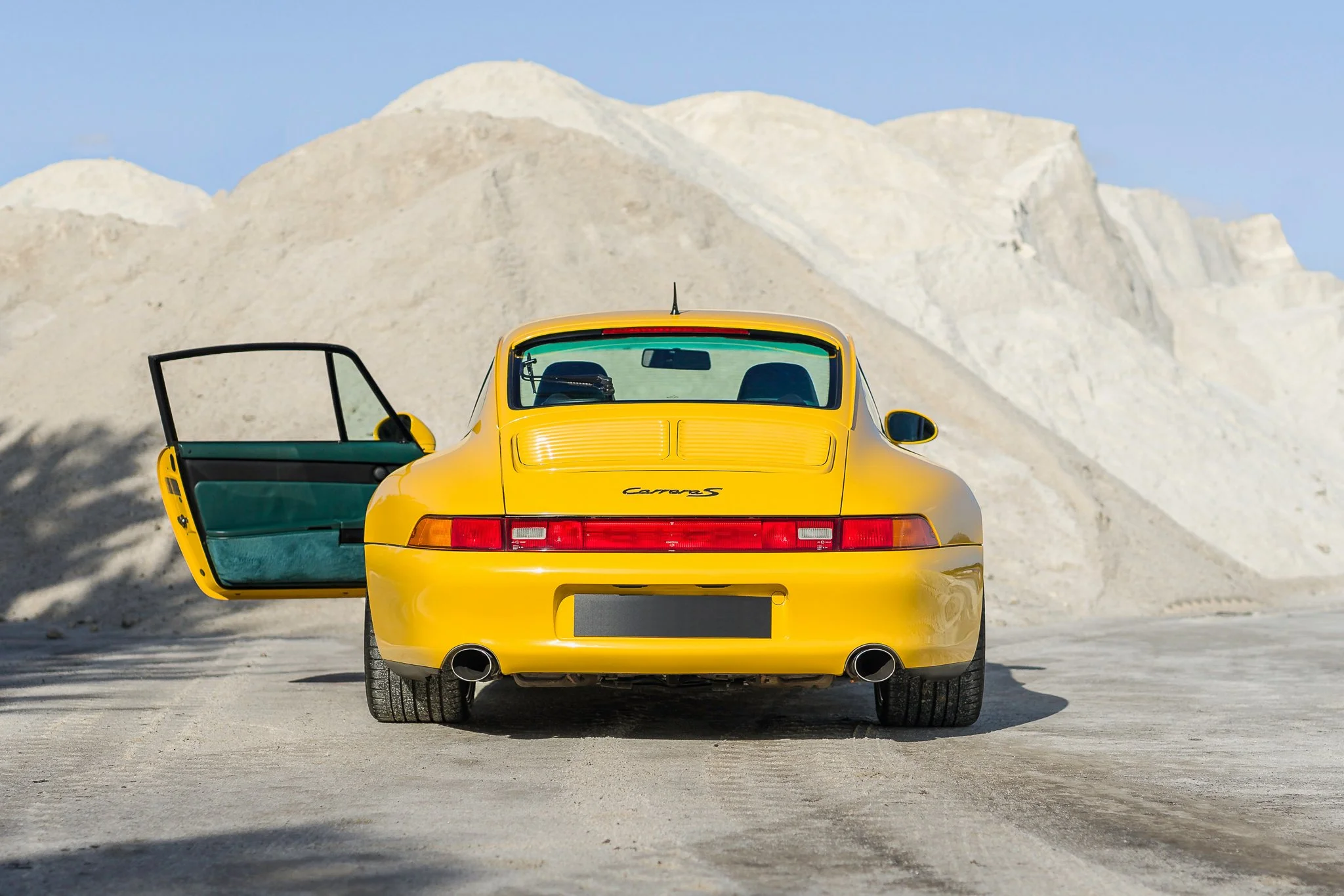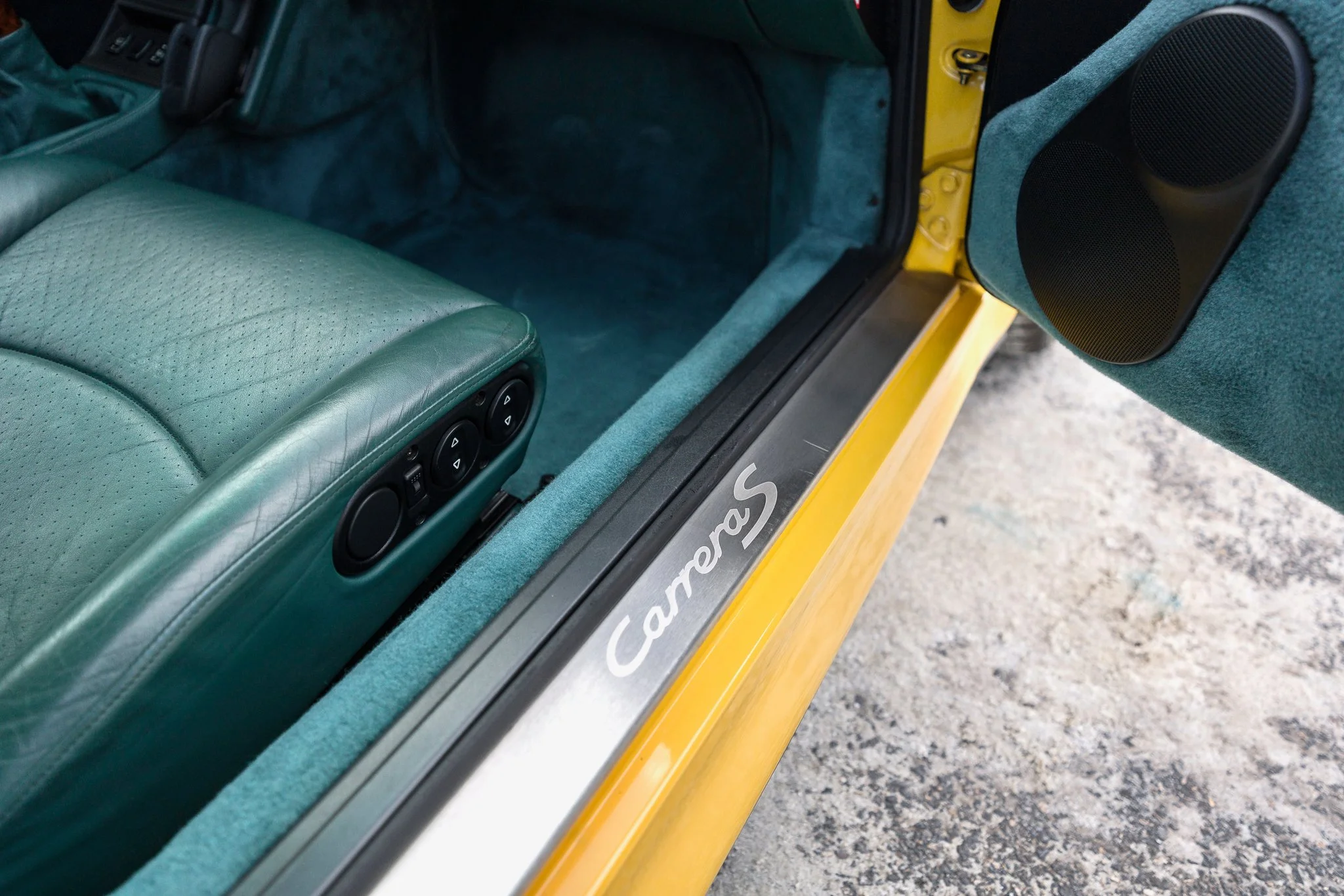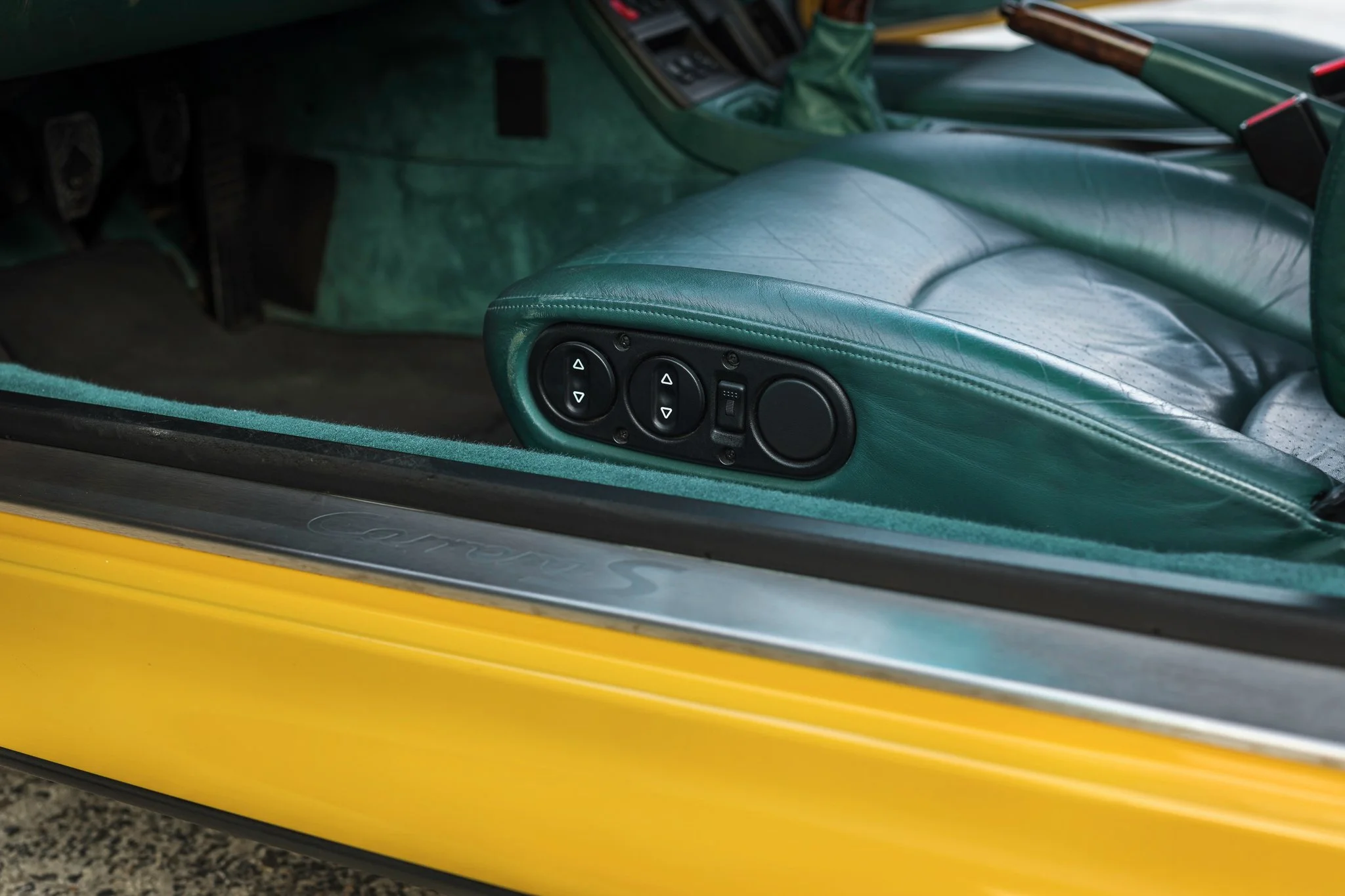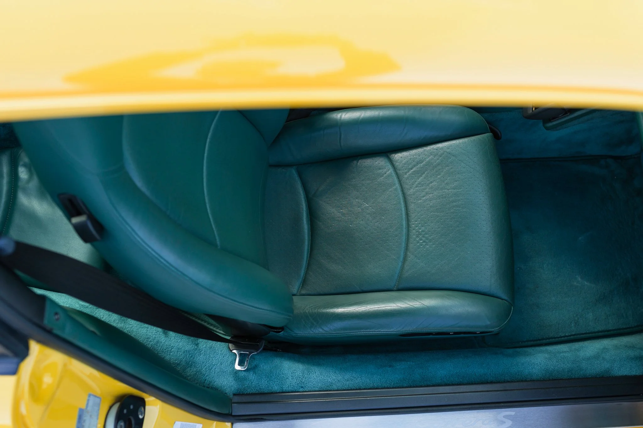 1997 Porsche 993 S 3.6L 285 Coupé with 6 speed mechanical gearbox, a one of one exclusive character in an extraordinary Speed Gelb over Nephrite Green configuration with the benefit of taking advantage of rare options speced by Cologne's Weissweiller.